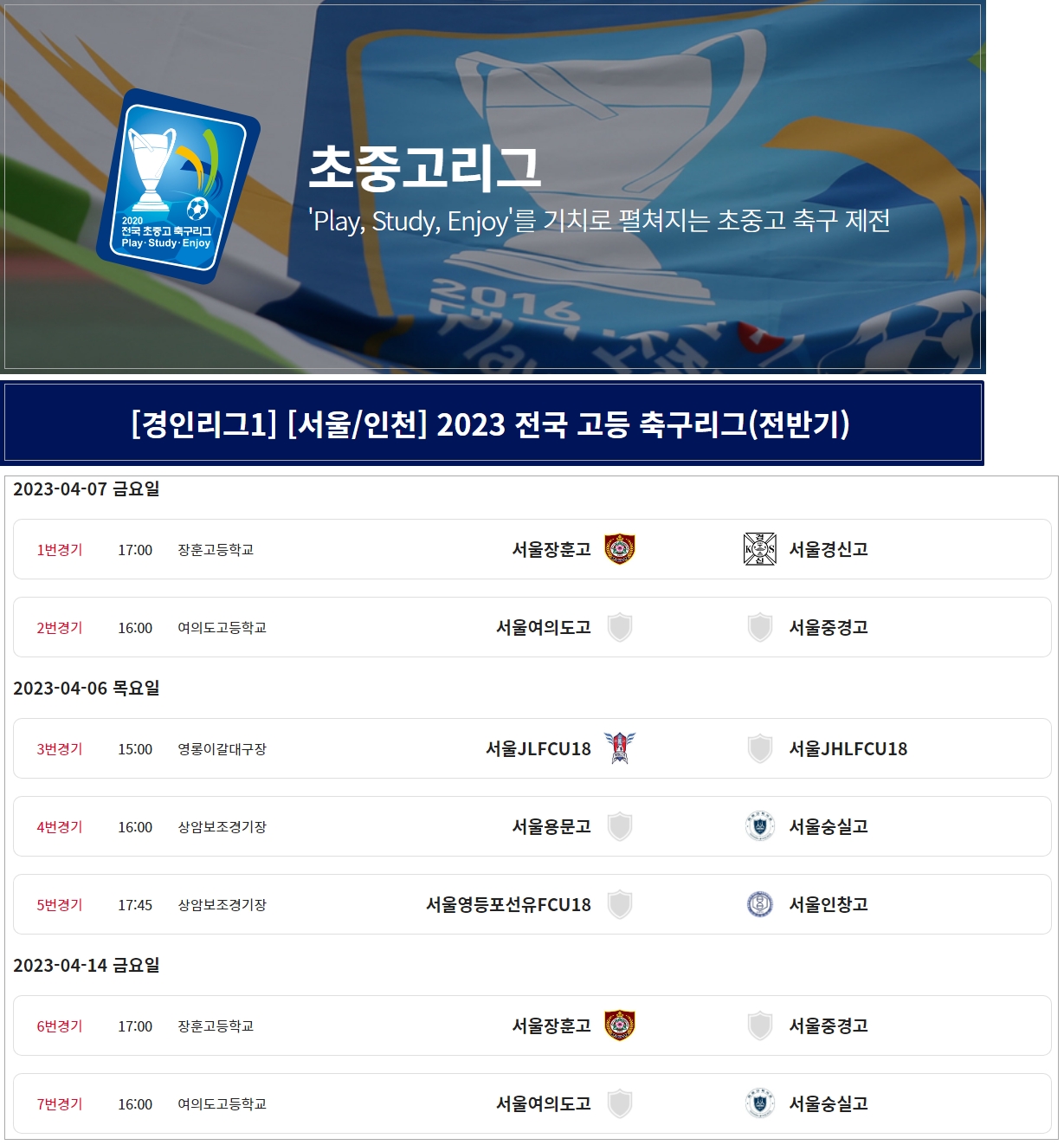 ⚽ 서울장훈고 - 서울경신고 (2023.04.07금 17:00 장훈고운동장) , 1번경기, [경인리그1][서울/인천] 2023 전국 고등 축구리그(전반기)