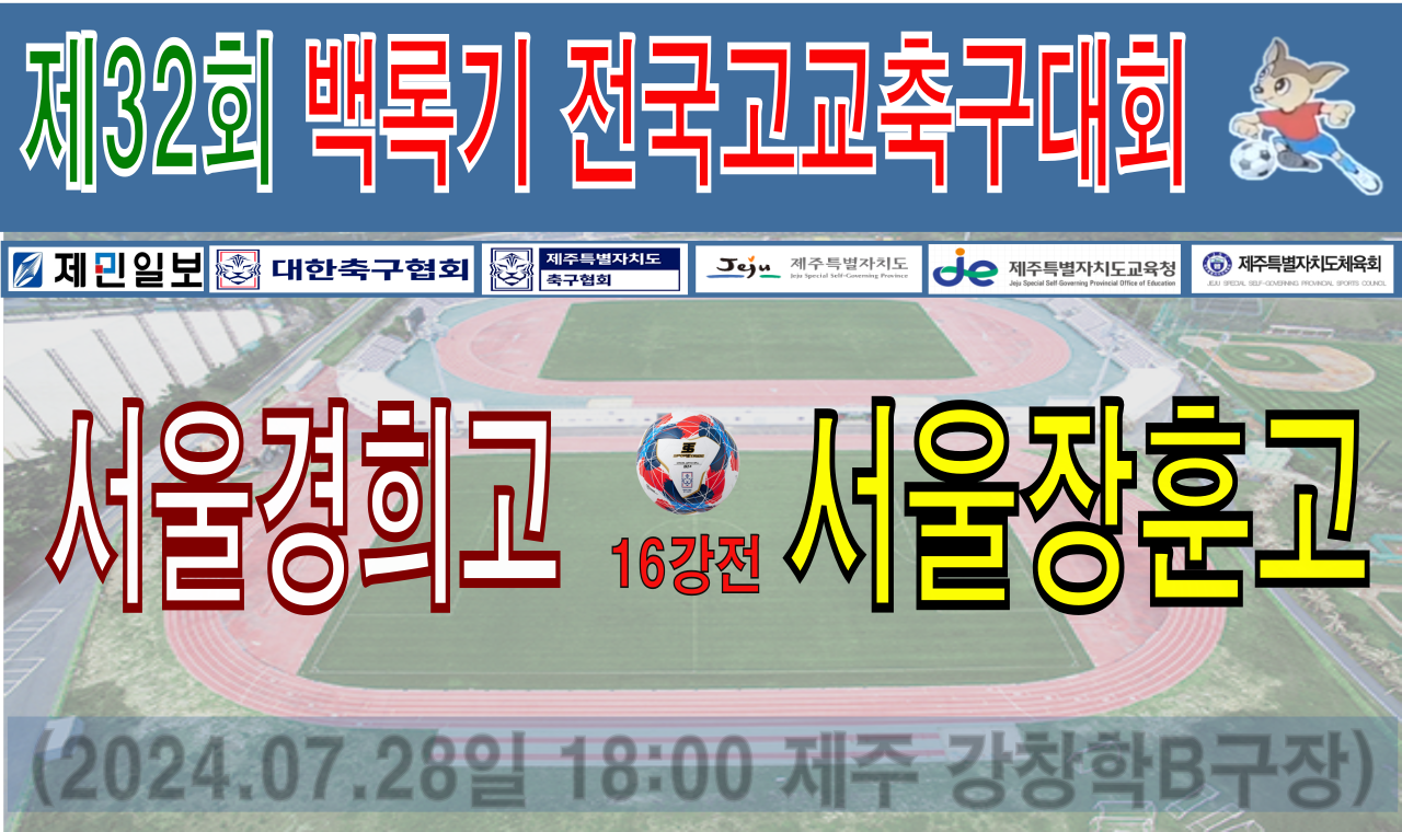 ⚽ 서울경희고 - 서울장훈고 (2024.07.28일 18:00 제주 강창학B구장) 16강전, 제32회 백록기 전국고등학교 축구대회[U18]