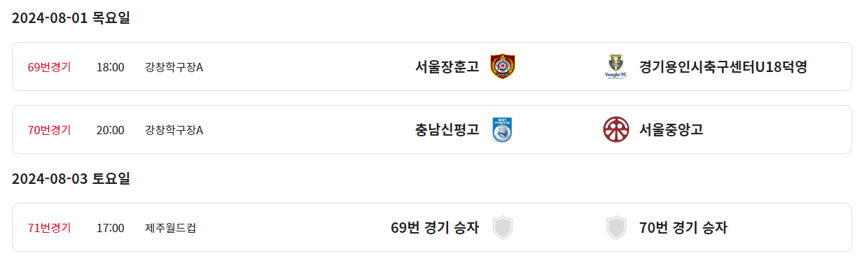 ⚽ 서울장훈고 - 경기용인시축구센터덕영U18 (2024.08.01목 18:00 제주 강창학A구장) 준결승전, 제32회 백록기 전국고등학교 축구대회[U18]