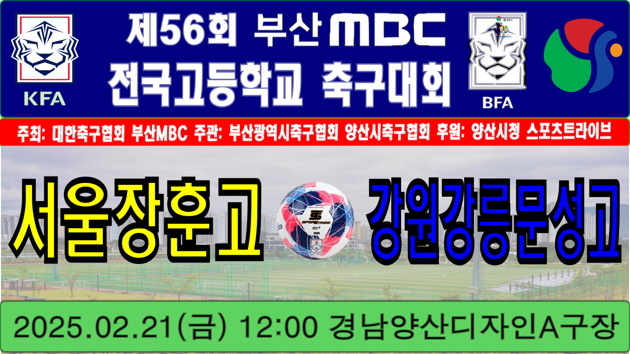 ⚽ 서울장훈고 - 강원강릉문성고 (2025.02.21금 12:00 경남양산 디자인공원A구장), 22강전, 제56회 부산MBC 전국고등학교 축구대회