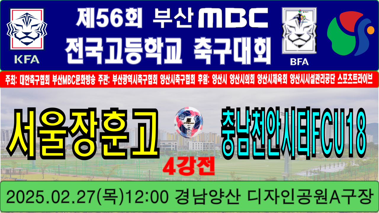 [장축회카페]⚽ 서울장훈고 - 충남천안시티FCU18 (2025.02.27목 12:00 경남양산 디자인공원A구장), 4강전