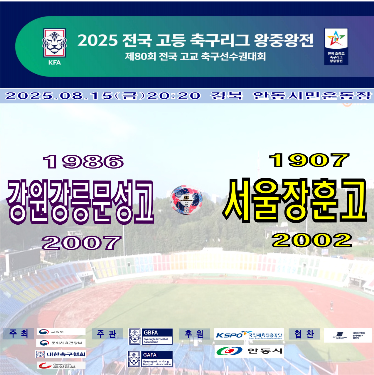 ⚽ 강원강릉문성고 - 서울장훈고 (2025.08.15금 20:20 경북 안동시민운동장), 예선1차전, 15번경기, 2025 전국 고등 축구리그 왕중왕전
