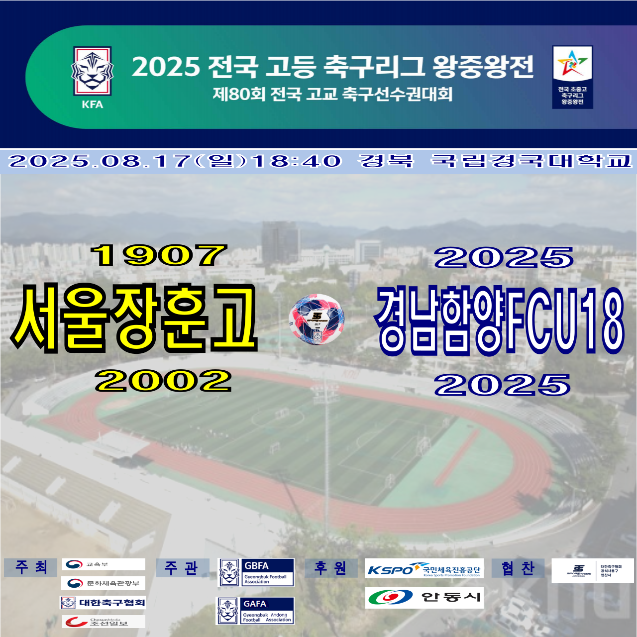 ⚽ 서울장훈고 - 경남함양FCU18 (2025.08.17일 18:40 경북 국립경국대학교), 예선2차전, 41번경기, 2025 전국 고등 축구리그 왕중왕전