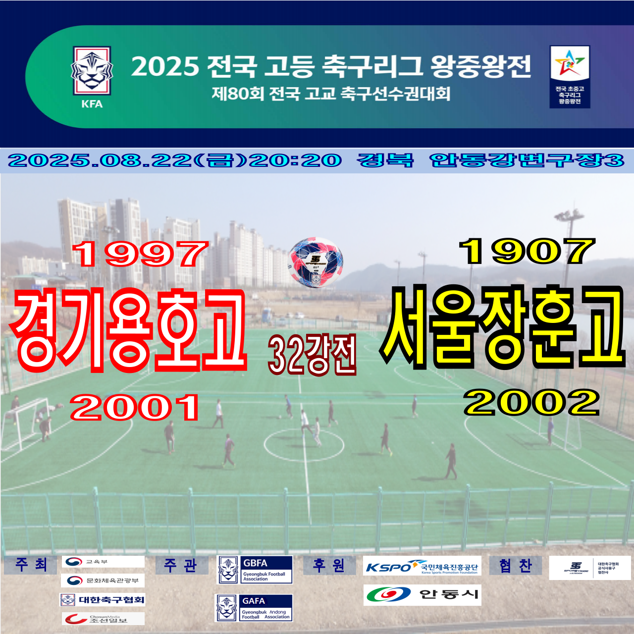 ⚽ 경기용호고(10조1위) - 서울장훈고(8조2위) (2025.08.22금 20:20 경북 강변구장3), 32강전, 109번경기, 2025 전국 고등 축구리그 왕중왕전
