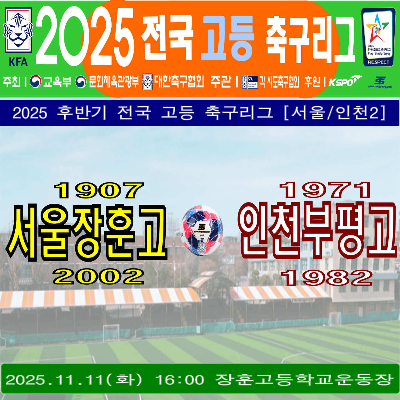 ⚽ 서울장훈고 - 인천부평고 (2025.11.11화 16:00 장훈고운동장), 리그5차전, 17번경기, 2025 후반기 전국 고등 축구리그 [서울/인천2]