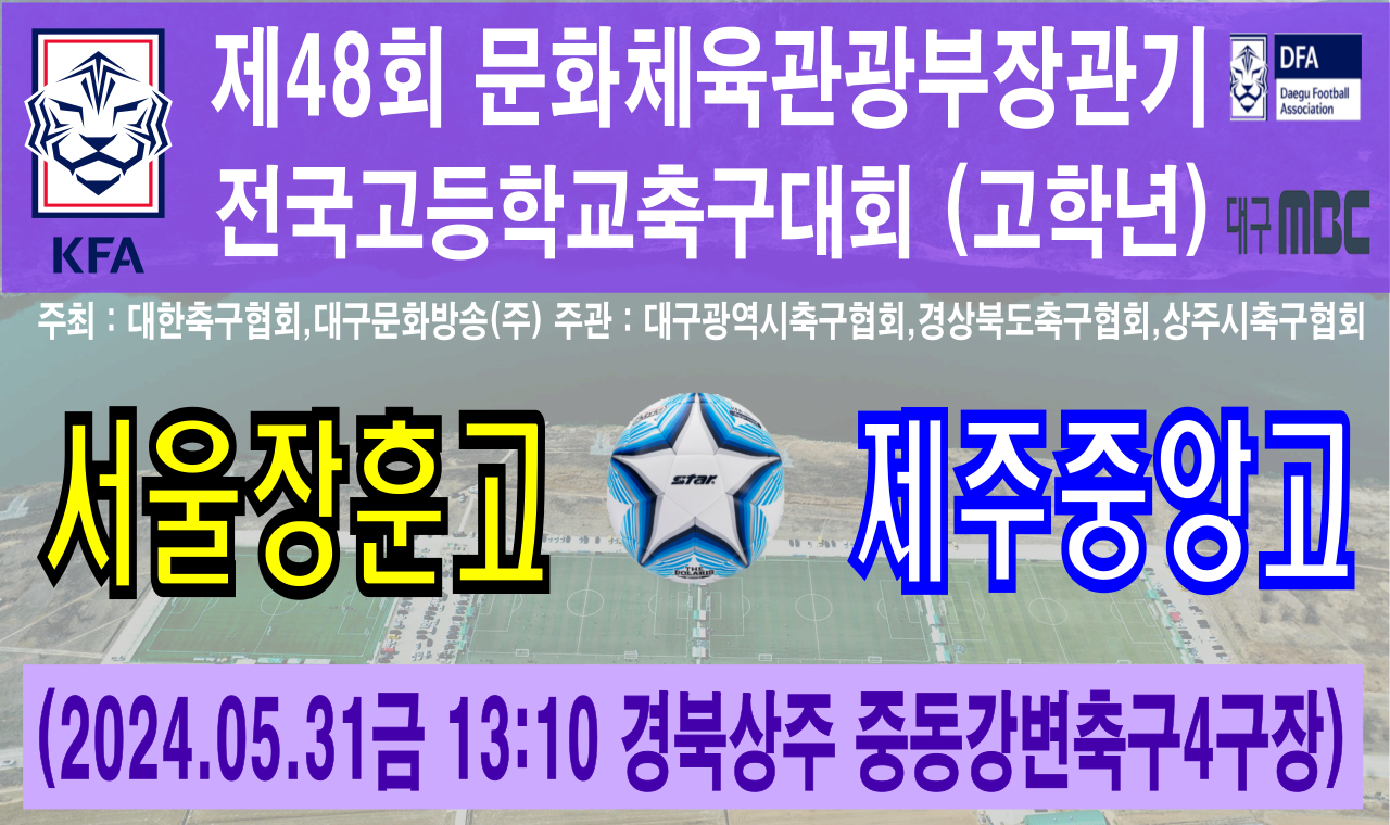 ⚽ 서울장훈고 - 제주중앙고 (2024.05.31금 13:10 경북상주 중동강변축구4구장) , 6조예선1차전 제48회 문화체육관광부장관기 전국 고등학교 축구대회 U18