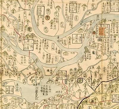 첫 번째 지도는 대청광여도(大淸廣輿圖)의 양자강 중류에 위치한 한양부(漢陽府) 일대인데, |