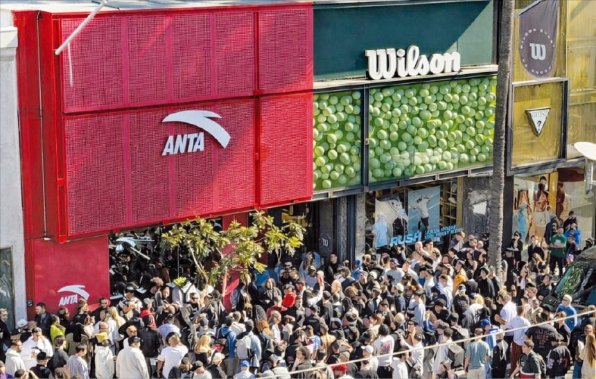 < 미국인 줄세운 中 안타스포츠 > 지난 2월 미국 캘리포니아주 로스앤젤레스 베벌리힐스에 문을 연 안타스포츠의 북미 첫 직영 플래그십 스토어 앞에 방문객이 입장하기 위해 줄을 서 있다. 안타스포츠 제공“중국의 나이키가 아닌, 세계의 안타가 되겠다.”