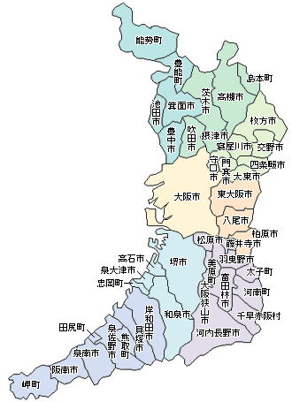 현재 오사카부에는 33市9町1村의 합계 43개의 자치단체가 있으며 町는 모두 「ちょう」라고 읽습니다. 또 인구 10만 이상의 도시가 22개로 47개도도부현 중에서 가장 많습니다.