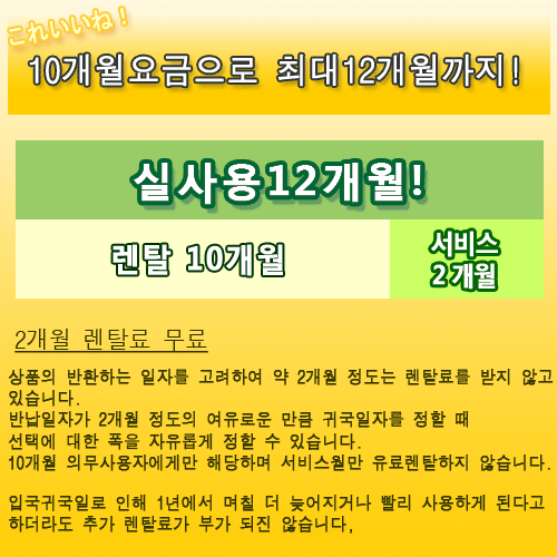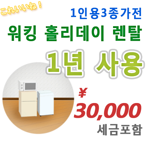 | 초기에 제품에 대한 설비보증비 10,000엔은 가전반납시 무조건10,000엔 반환합니다. 결제는 30,000엔 (10개월 렌탈료) + 설비보증비 10,000엔 선납입니다. 초기비용 40,000엔 ! 2개월은 서비스 이용료로 렌탈료를 받지 않습니다. 더 궁금하신 사항은 Q & A 에서 확인해 보세요. |