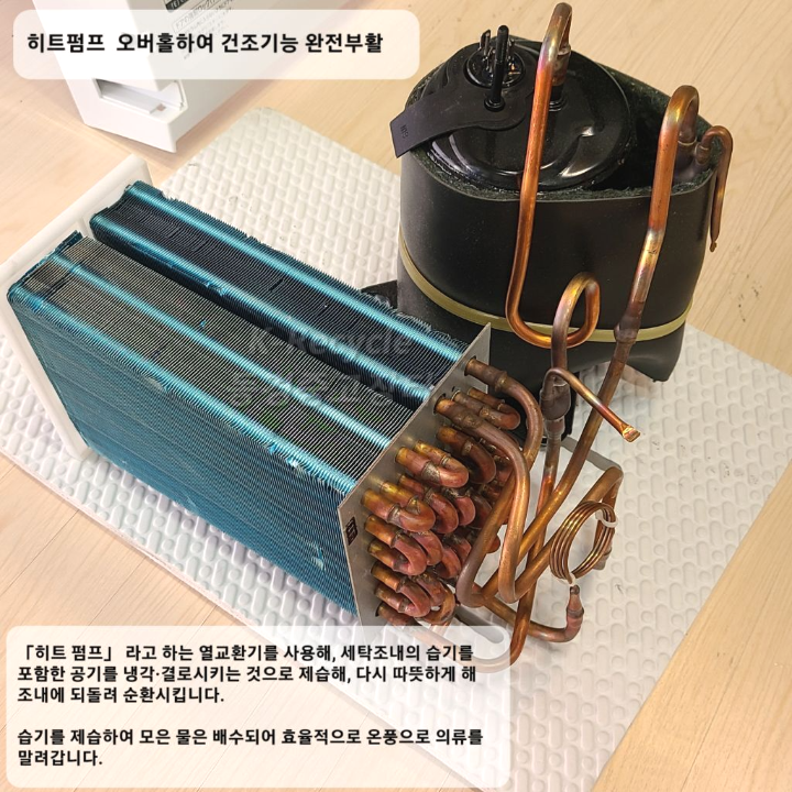세탁기 주위가 더워지는 것도 없고, 건조 운전중에 세탁기를 열어도 안전합니다.