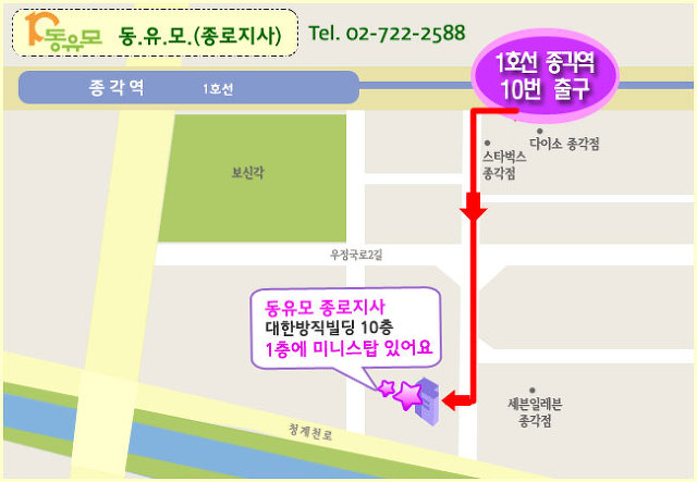 주소 | 서울특별시 종로구 청계천로 61, 10층 (대한방직협회빌딩) (1층에 미니스탑) |