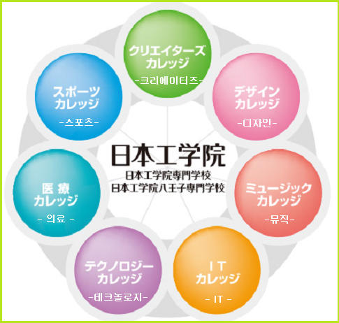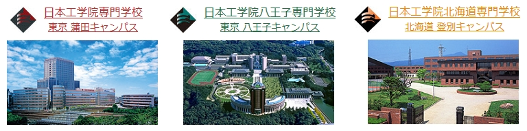 일본공학원 전문학교는 카마타교, 하치오지교, 홋카이도교 3개의 전문학교로 구성 되어 있으며, 공과계열의 7개 분야에 걸친