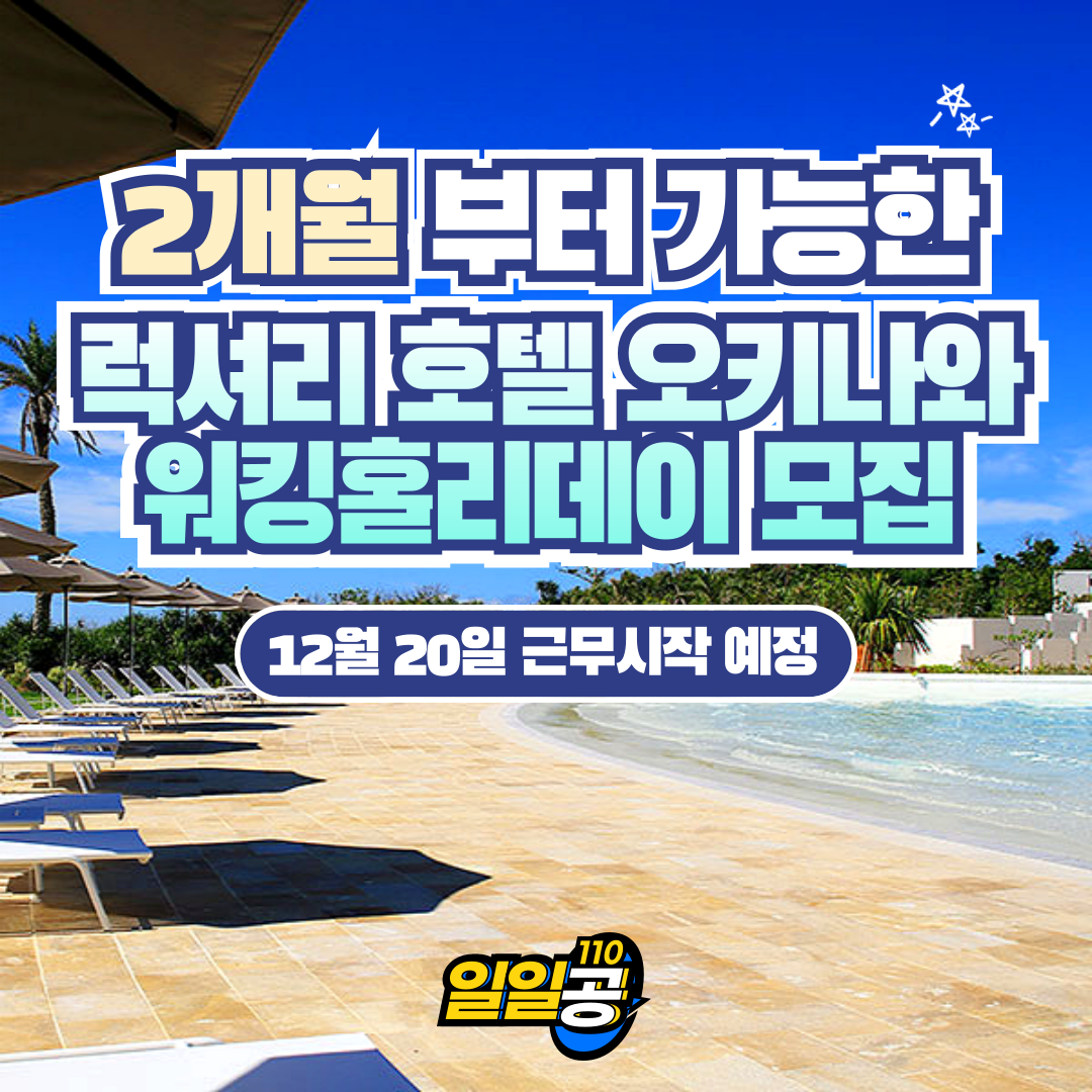 일본 최고의 휴양지 오키나와의 고급 리조트, 리잔씨파크 호텔에서 근무할 수 있는