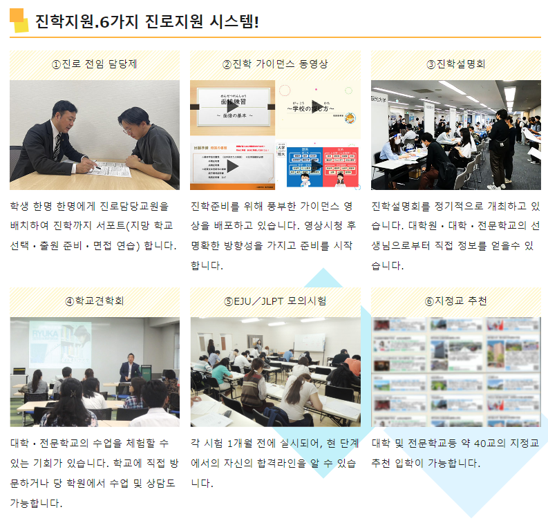J국제교욱학원은 진로전임 담당제에 의하여 맨투맨 지도로 재학생의 진로를 확실하게 서포트하고 있습니다.