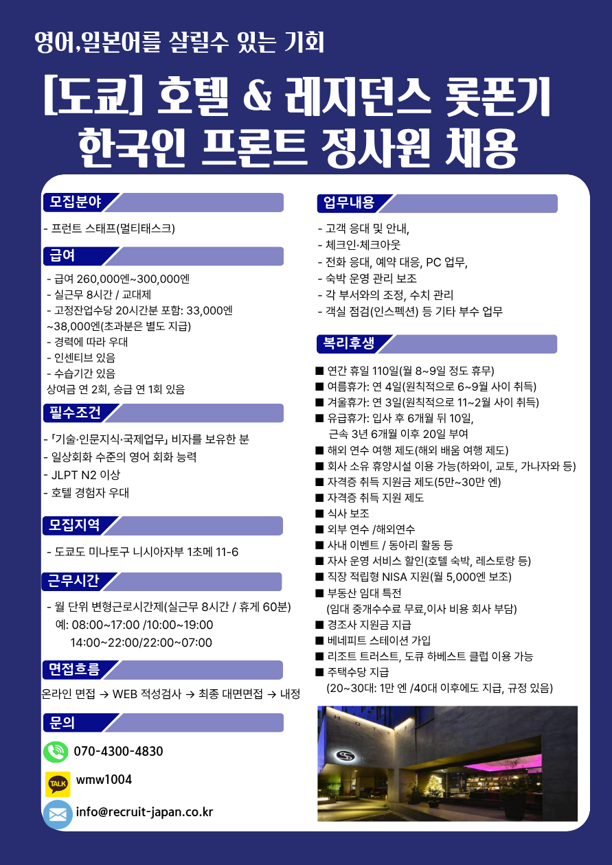서류접수 : www.recruit-japan.co.kr 홈페이지
