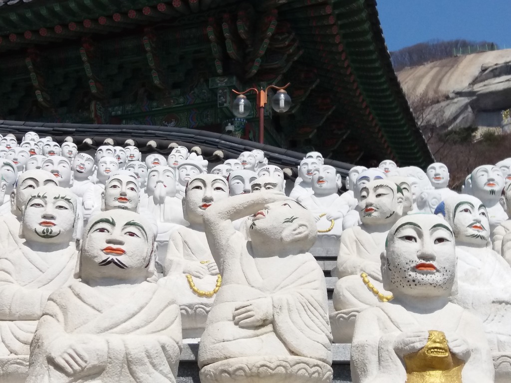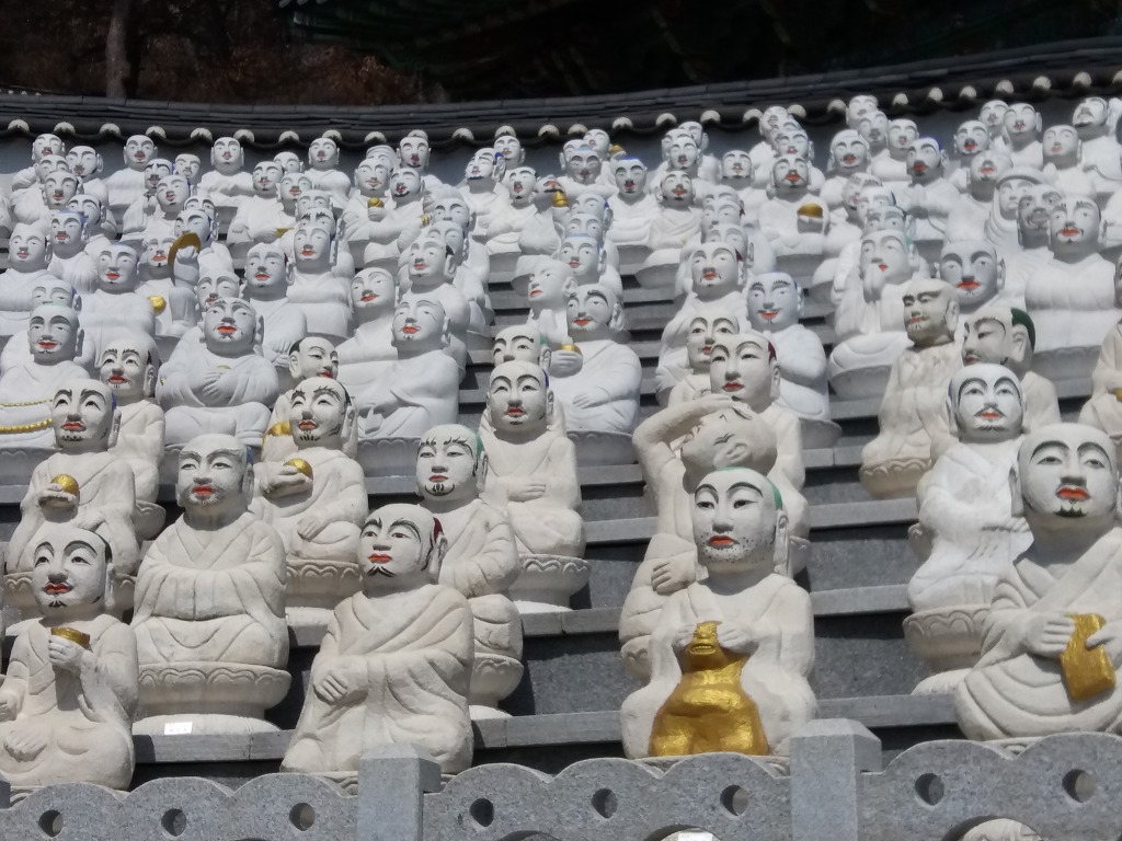 그리고 산정상에 위치한 마애관세음보살상까지 보고 내려왔다. 그리고 오백명의 나한상(인간이지만 이미 최고 경지에 이른, 인간의 윤회가 필요없는 불교의 성자들) 들도 구경을 했다.