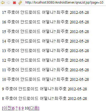 while(rs.next()){// 현재 페이지의 글에 대한 정보 리스트에 담기