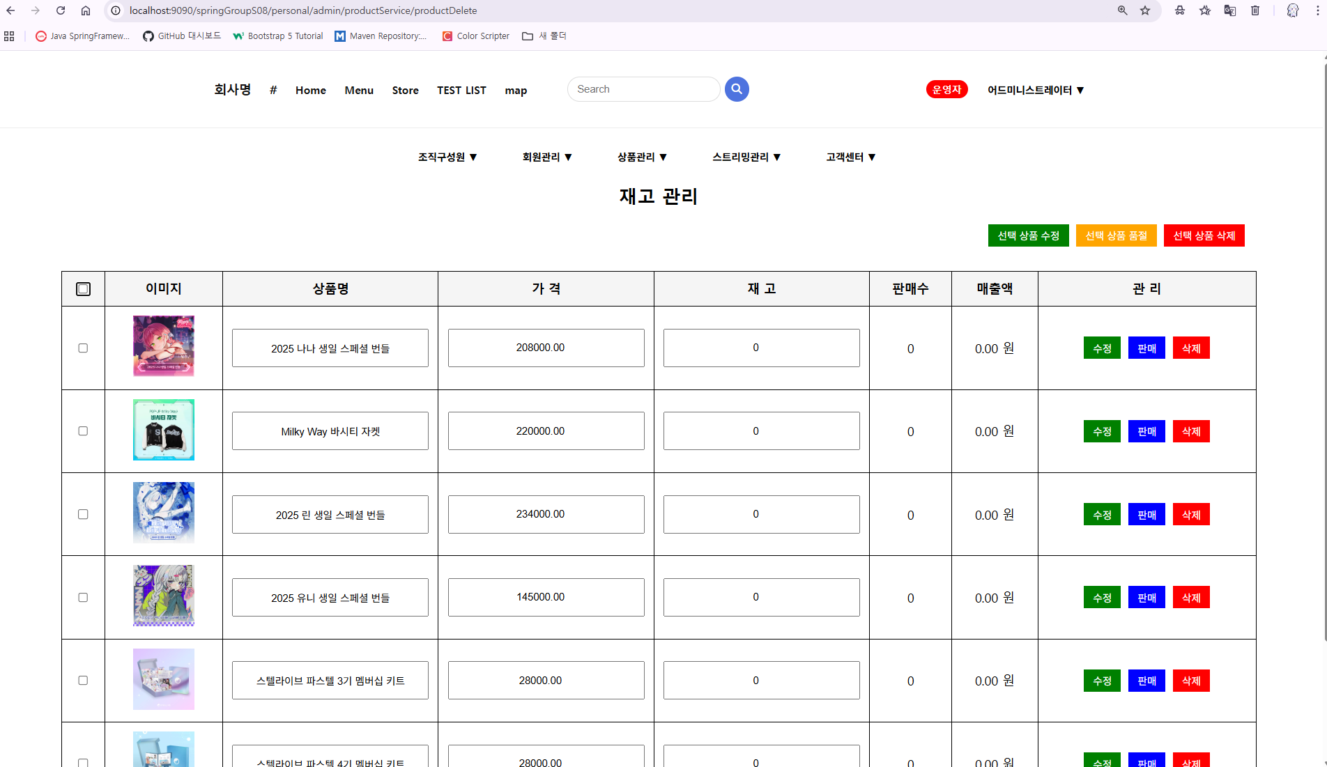 1 2 3 4 5 6 7 8 9 10 11 12 13 14 15 16 17 18 19 20 21 22 23 24 25 26 27 28 29 30 31 32 33 34 35 36 37 38 39 40 41 42 43 44 45 46 47 48 49 | package com.spring.springGroupS08.vo; import java.util.List; import lombok.Data; @Data public class ProductVOList { private List<ProductVO> products; } -------------------------------------------------------------------------------------------------------------- @Controller @RequestMapping("/personal/admin/productService") public class AdminProductController { @Autowired ProductService productService; /* ๋ฑ๋ก๋ ์ํ ์์ */ @PostMapping("/productUpdate") public String productUpdatePost(ProductVO vo, RedirectAttributes redirectAttributes) { int res = productService.updateProduct(vo); String msg = (res > 0) ? msg = "์ํ ์์ ์๋ฃ" : "์์ ์คํจ"; redirectAttributes.addFlashAttribute("msg", msg); return "redirect:/personal/admin/productService/productDelete"; } /* ์ ํ๋ ์ํ ์์ */ @PostMapping("/selectUpdate") public String selectUpdate(@ModelAttribute("products") ProductVOList wrapper, @RequestParam(value="selectId", required=false) List<Long> selectIds, RedirectAttributes redirectAttributes) { int count = 0; if (selectIds != null) { for (ProductVO vo : wrapper.getProducts()) { if (selectIds.contains(vo.getProductId())) { count += productService.updateProduct(vo); } } } redirectAttributes.addFlashAttribute("msg", count + "๊ฐ ์ํ ์์ ์๋ฃ"); return "redirect:/personal/admin/productService/productDelete"; } } | cs |