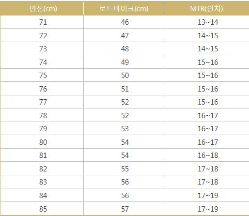 키 173 / 인심 80 / 싯튜브 52~53(트래디셔널), 50~51(슬로핑) / S ....... MTB 16.5"