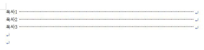 <목차 뒤에서 TAB를 치면 점선이 나타납니다>