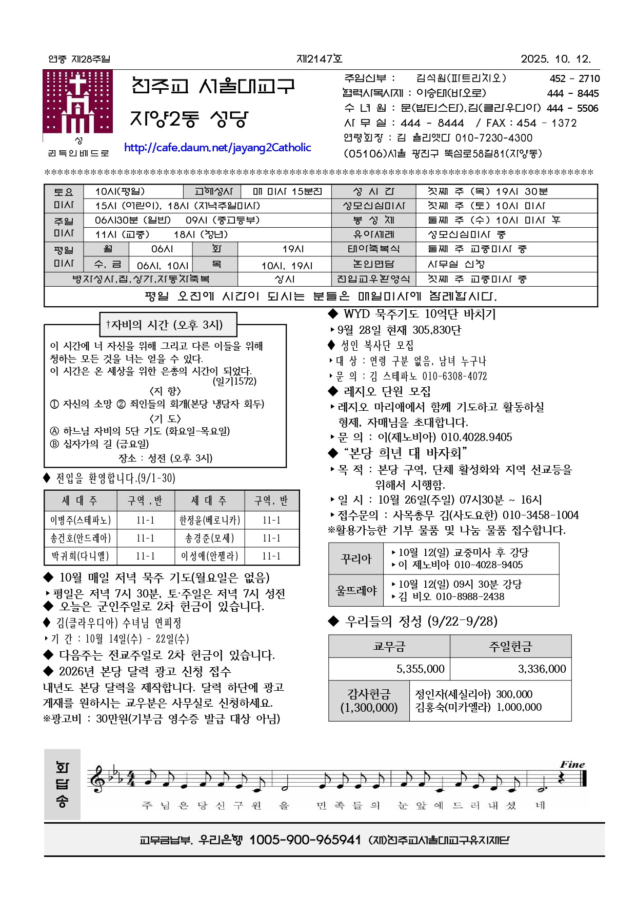 2025.10. 12 본당 주보 작성자양희정 안나|작성시간25.10.02|조회수223 목록 댓글 0 글자크기 작게가 글자크기 크게가 다음검색 현재 게시글 추가 기능 열기 북마크 공유하기 신고 센터로 신고 댓글 댓글 0 댓글쓰기 댓글 리스트