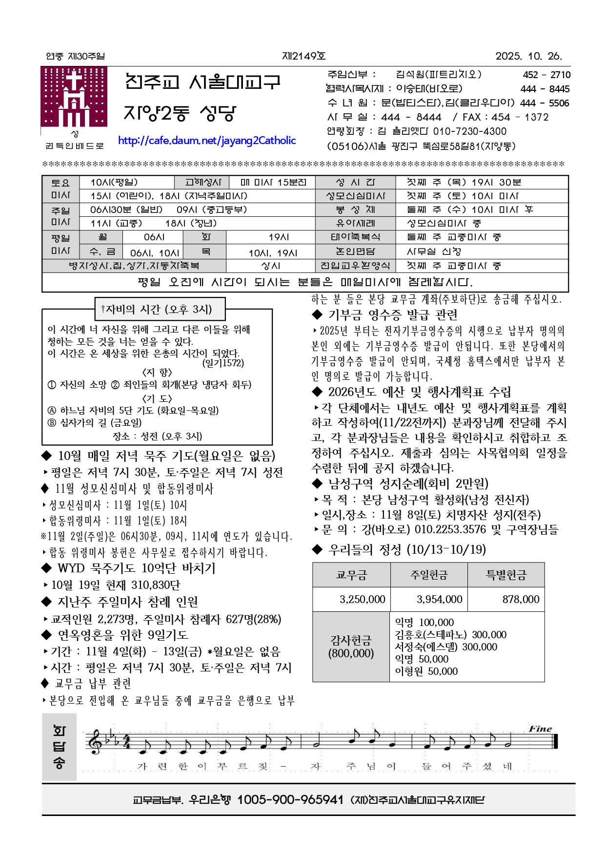 2025.10. 26 본당 주보 작성자양희정 안나|작성시간25.10.22|조회수131 목록 댓글 0 글자크기 작게가 글자크기 크게가 다음검색 현재 게시글 추가 기능 열기 북마크 공유하기 신고 센터로 신고 댓글 댓글 0 댓글쓰기 댓글 리스트