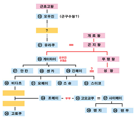 그러니까 '조메이 천황비(비다츠 천황의 증손녀) = 고오교쿠 천황( 642∼645) = 사이메이 천황(655∼661)'라는 것입니다.