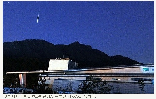 18일 새벽 수많은 별똥별이 쏟아져 내려 장관을 이루었다. 사자자리 유성우는 복사점이 사자자리 감마별 근처인 적경 10h14m, 적위 +22°에 있는 대표적인 대유성우의 하나이다. 사자자리 유성우는 매년 11월 17일과 18일을 전후하여 시간당 십수개에서 많은 경우 수십만개의 유성이 떨어진다.