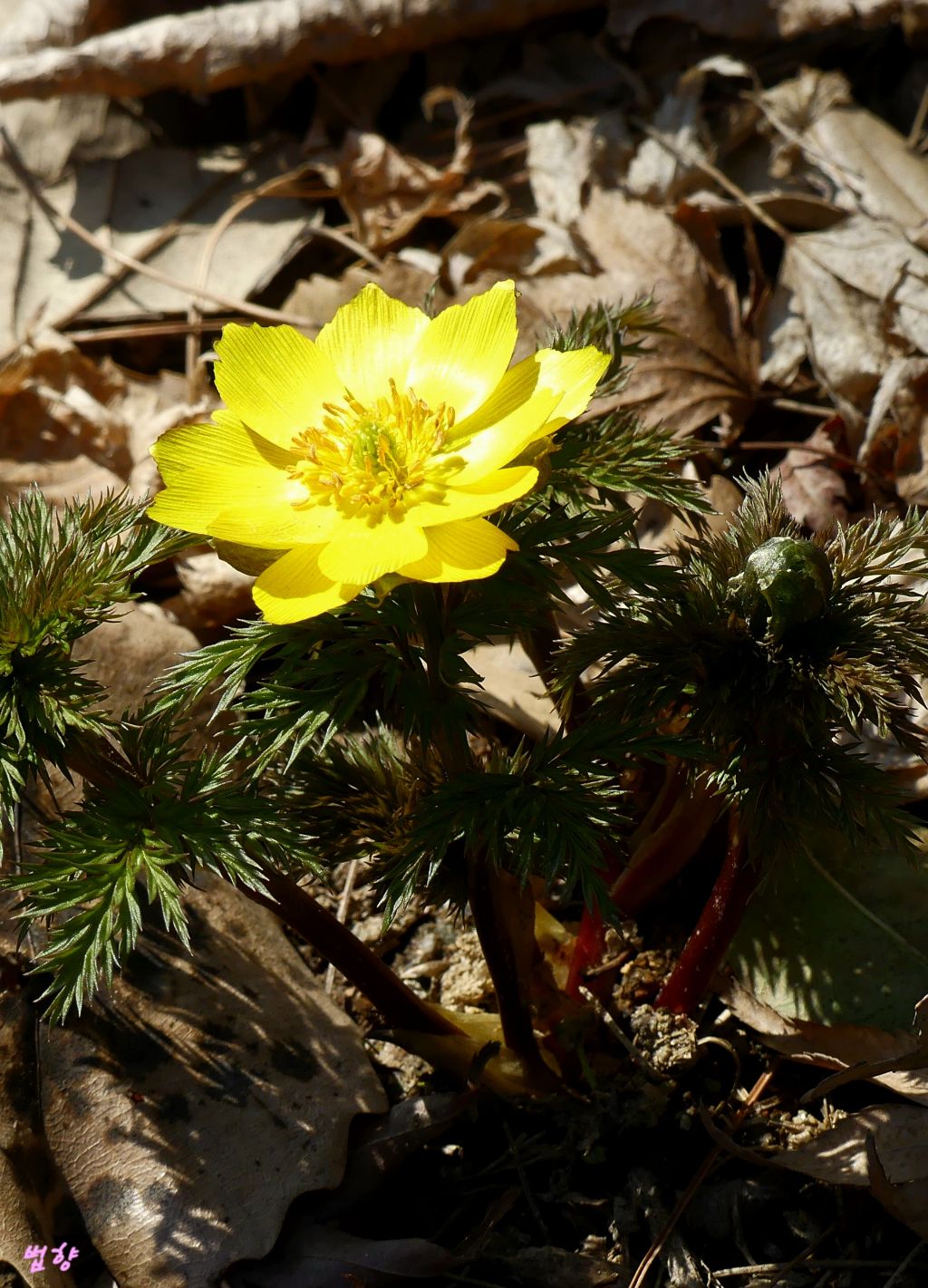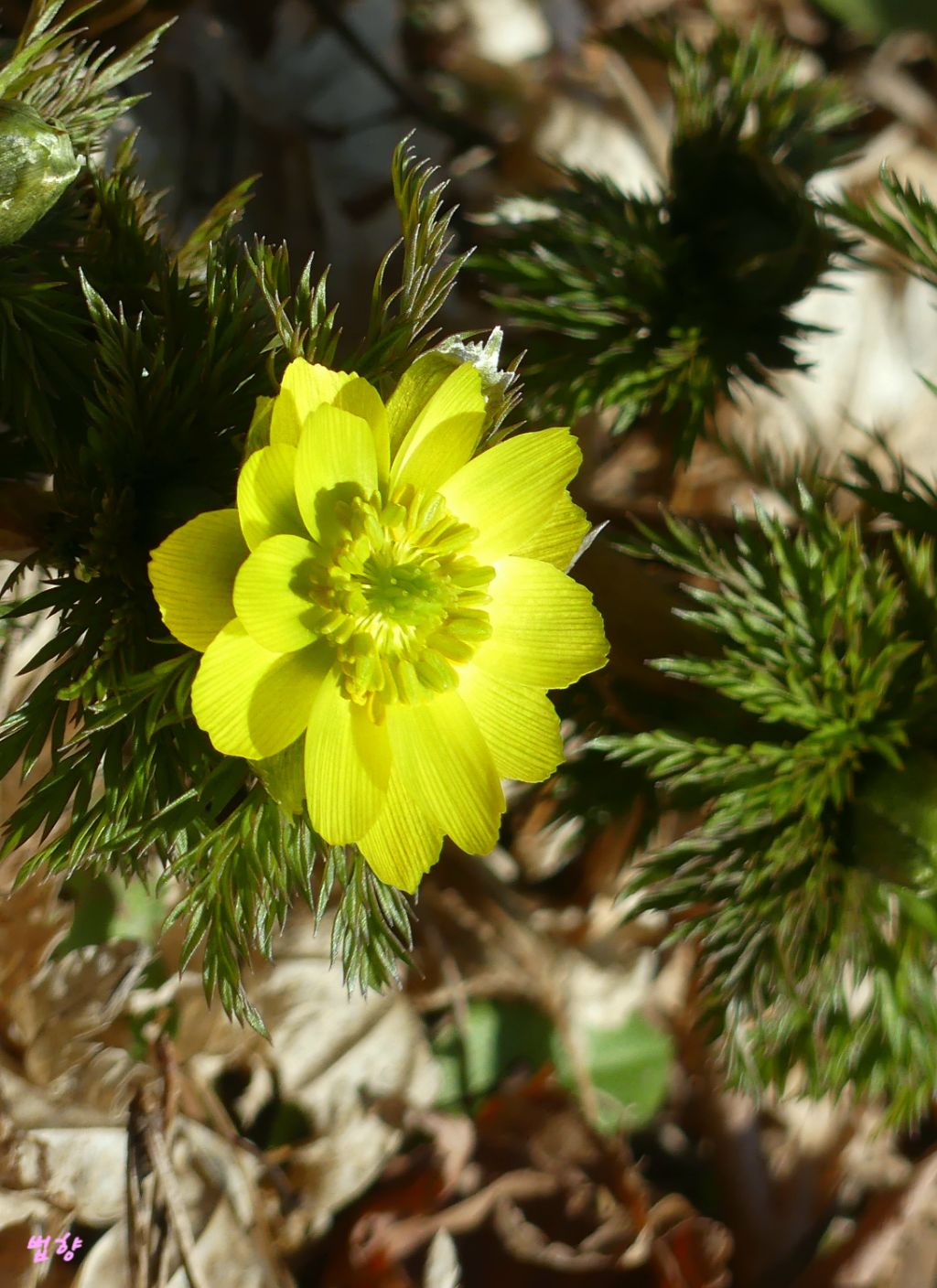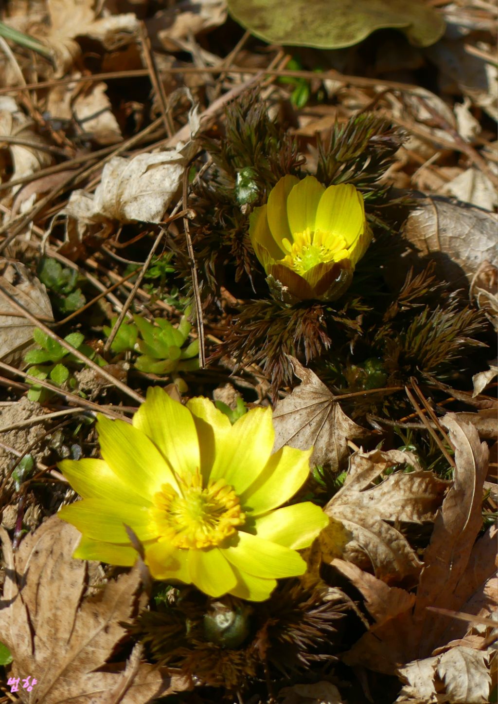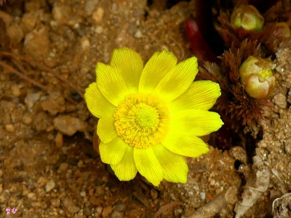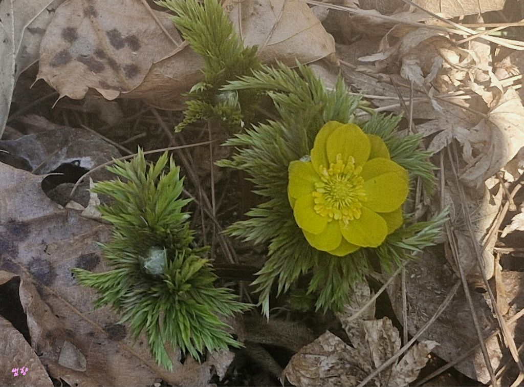 복수초란 일본식 이름을 쓰지 않고 '얼음새 꽃', '원일초', '설련화'로 부르데 개인적으로는 얼음새꽃 이름이 정겹게 느껴집니다.