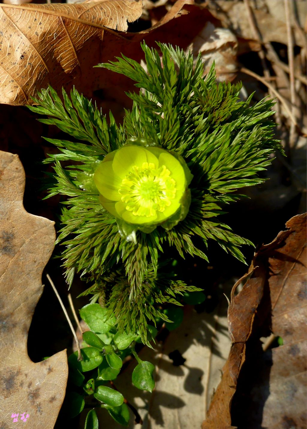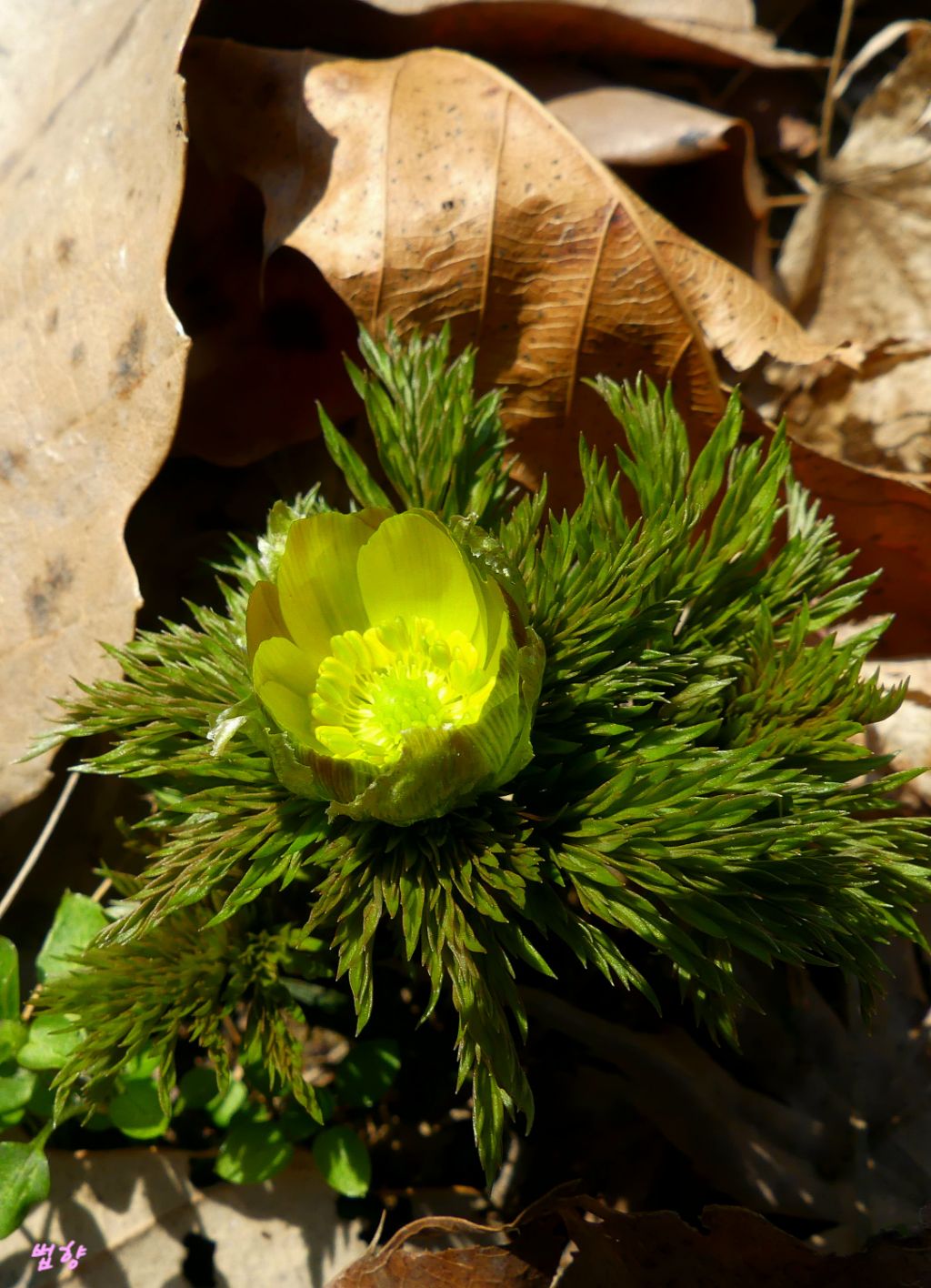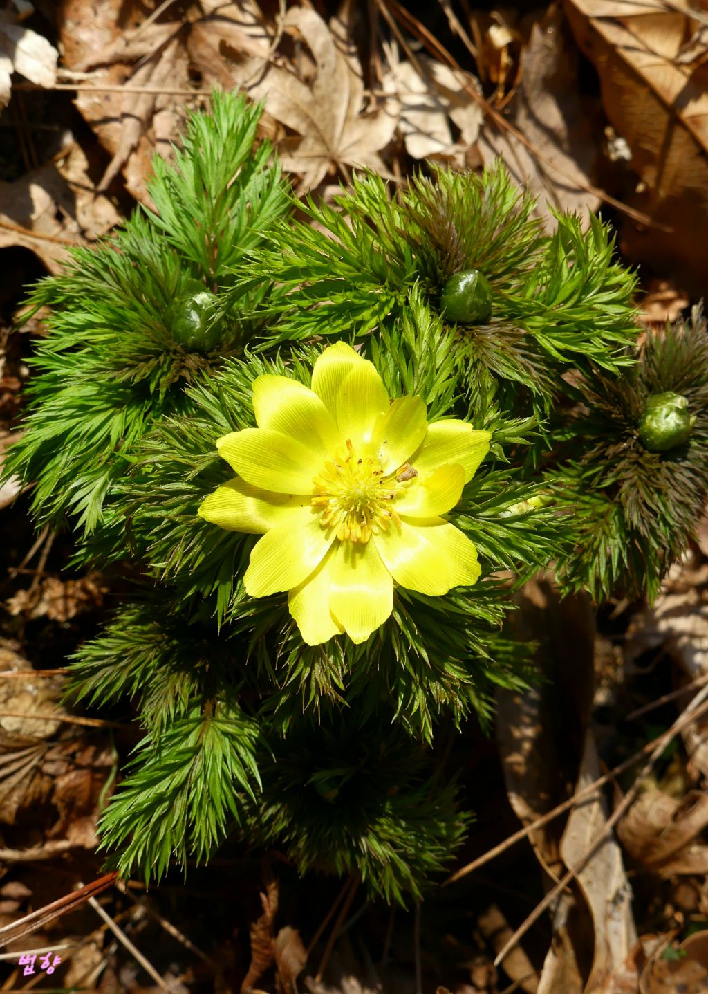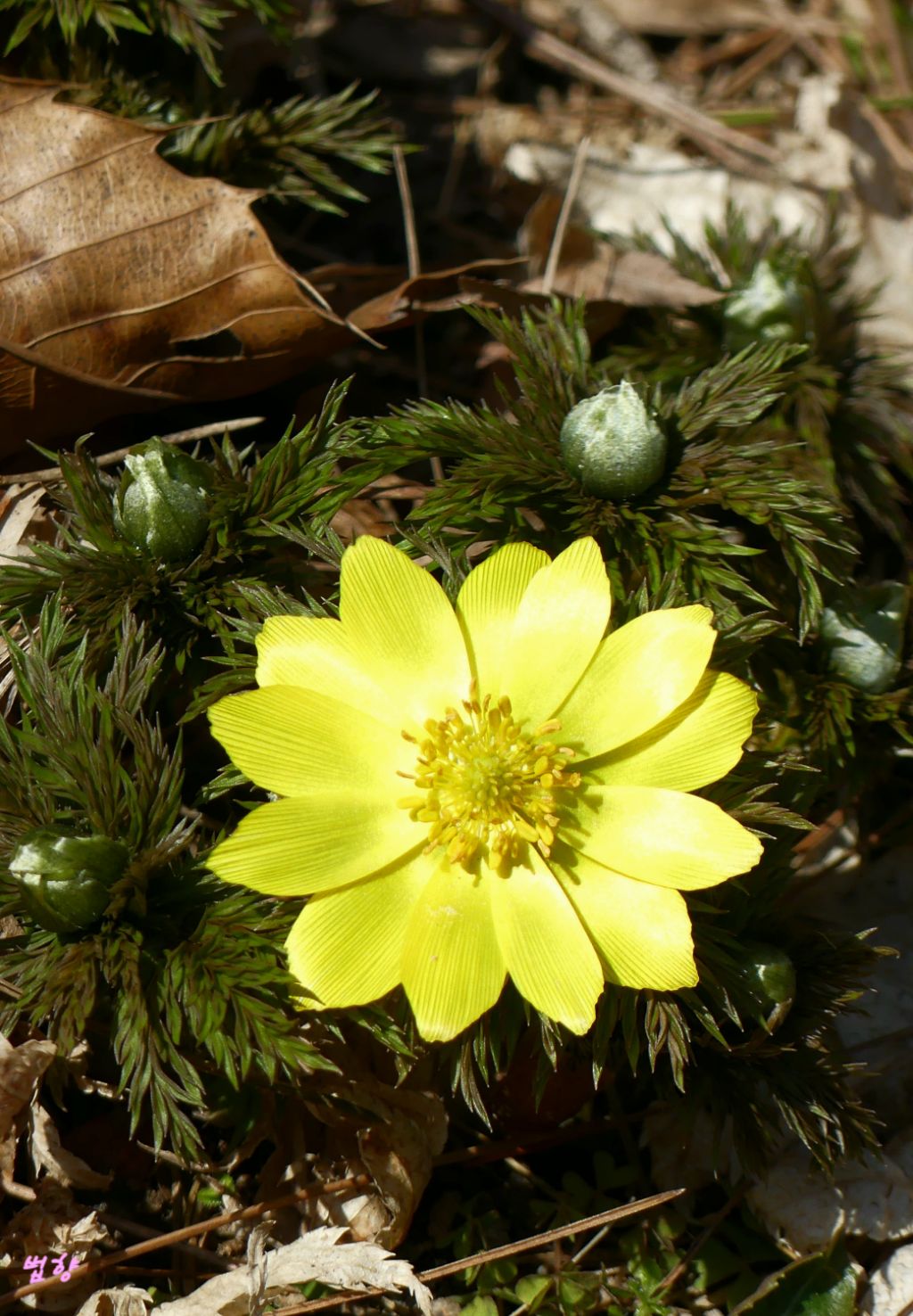 복수초란 일본식 이름을 쓰지 않고 '얼음새 꽃', '원일초', '설련화'로 부르데 개인적으로는 얼음새꽃 이름이 정겹게 느껴집니다.