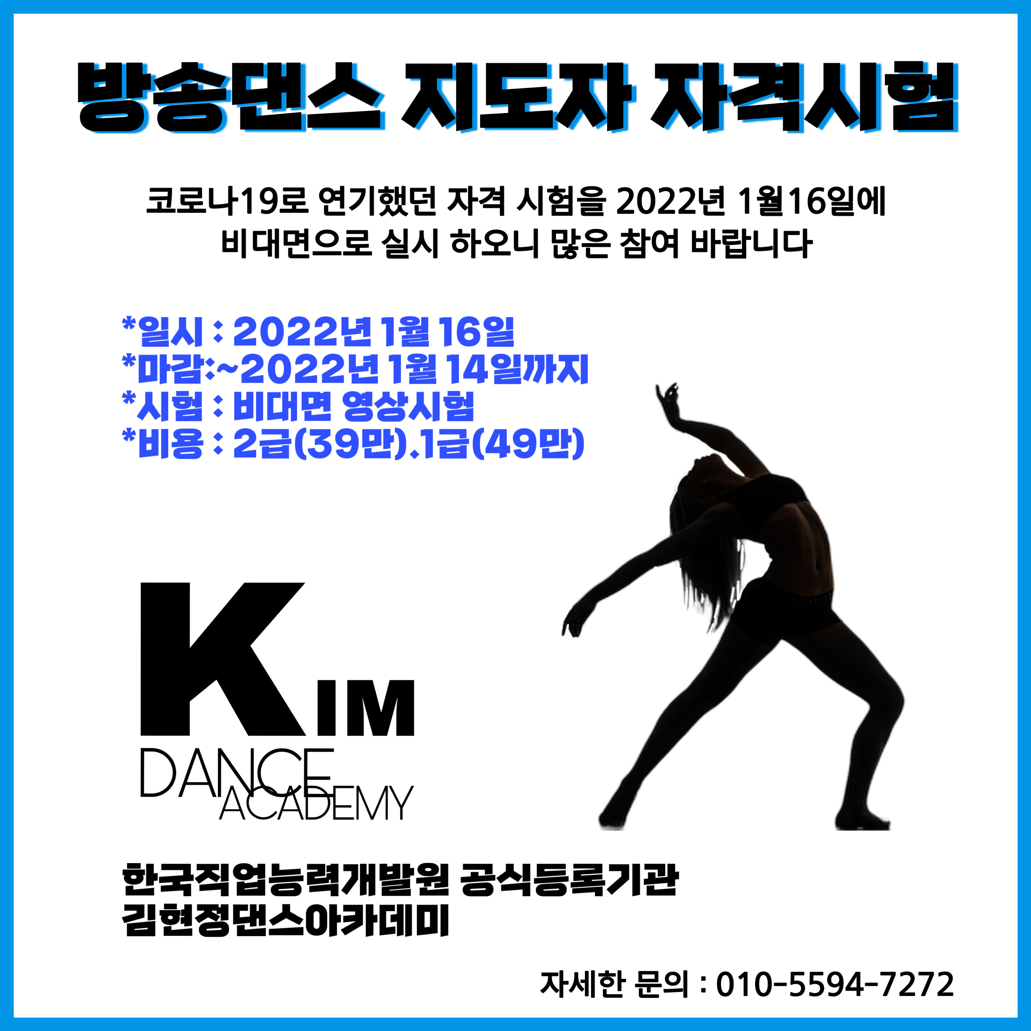 방송댄스 지도자 자격 시험이 2022년 1월에 있습니다