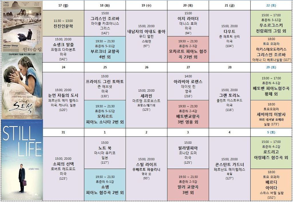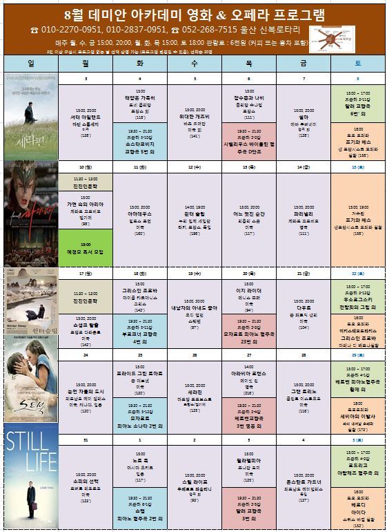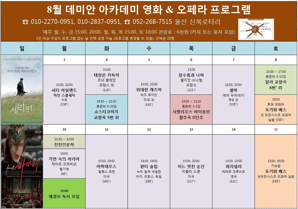 금주의 데미안 아카데미 영화 & 오페라 (2015년 8/3 (월) ~ 8/8 (토)) 상영 일정을 아래와 같이 안내드립니다.