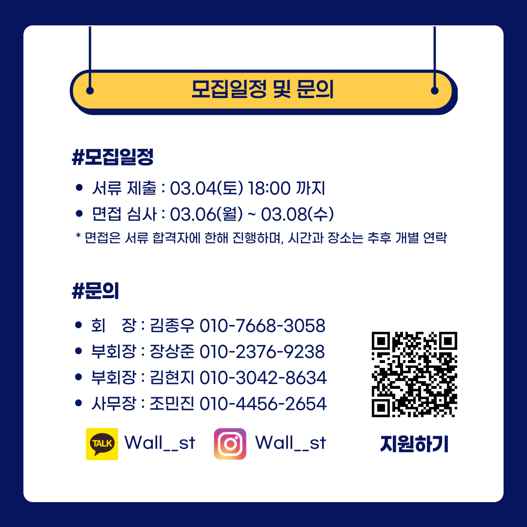 - 입회 설명: 월가 카카오톡 채널을 통해 문의사항 질문가능 (카카오톡 채널: @wall__st)