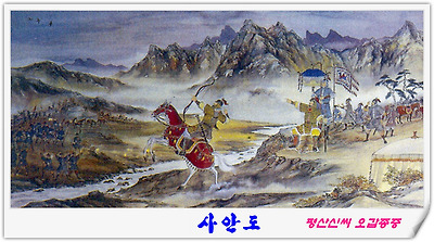 서기 927년 9월 신라를 침략하고 돌아가는 후백제 왕 견훤(甄萱)을 대구 동수에서 맞아 싸울 때 고려군이 전세가 불리하여 전멸할 상황에 이르자 장절공(壯節公)이 고려 태조를 피신케한 뒤 어가(御駕)에 올라 적진에 나아가 분전하는 장면. 장절공은 마침내 이 싸움에서 태조를 대신하여 순절(殉節)하셨다.