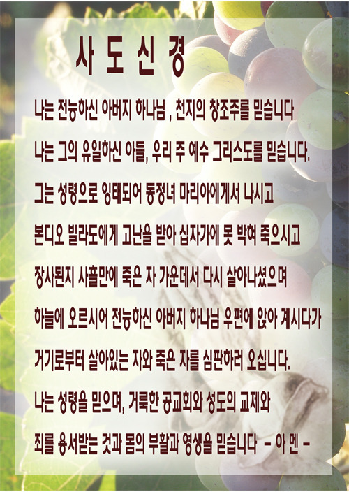 사도신경(새번역)입니다. 작성자DWSeo|작성시간13.01.12|조회수333 목록 댓글 0 글자크기 작게가 글자크기 크게가 다음검색 현재 게시글 추가 기능 열기 북마크 공유하기 신고 센터로 신고 댓글 댓글 0 댓글쓰기 답글쓰기 댓글 리스트