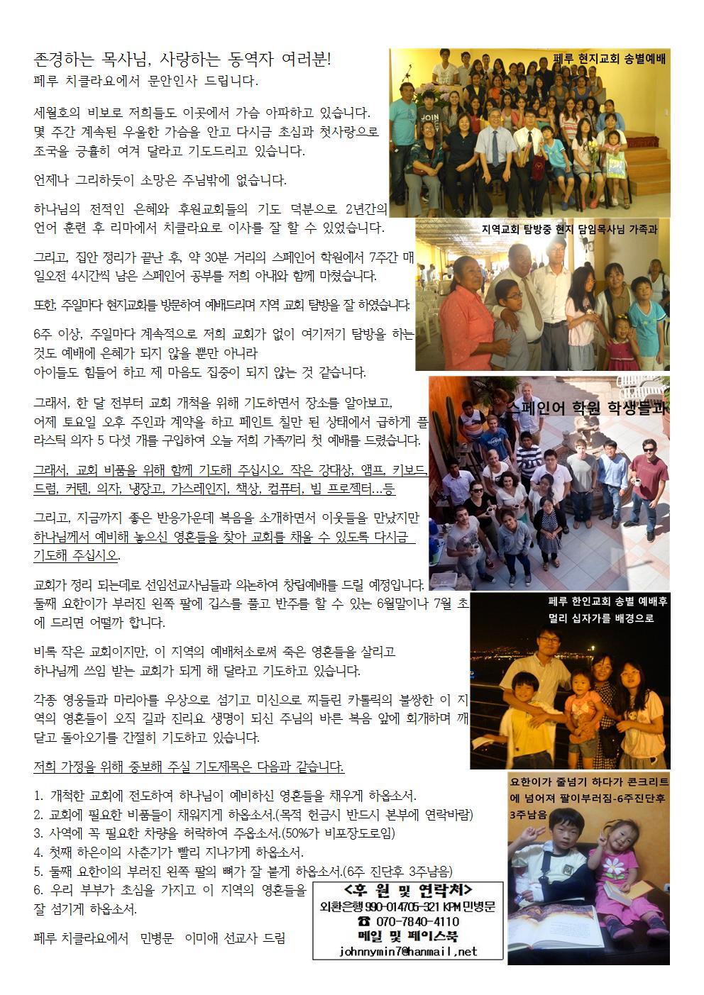 (2014년 두번째 기도편지)-페루 치클라요에서 민병문 이미애 선교사 문안드립니다. 작성자자니|작성시간14.05.19|조회수71 목록 댓글 0 글자크기 작게가 글자크기 크게가 다음검색 현재 게시글 추가 기능 열기 북마크 공유하기 신고 센터로 신고 댓글 댓글 0 댓글쓰기 답글쓰기 댓글 리스트