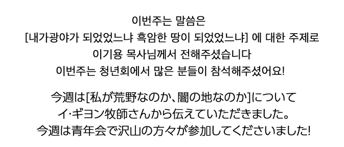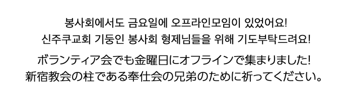 [일본] 20220424 신주쿠교회 주일뉴스 - 동경신주쿠교회 (생명의말씀선교회 - 선교발자취) 작성자생명의말씀선교회|작성시간22.05.11|조회수192 목록 댓글 0 글자크기 작게가 글자크기 크게가 다음검색 현재 게시글 추가 기능 열기 북마크 공유하기 신고 센터로 신고 댓글 댓글 0 댓글쓰기 답글쓰기 댓글 리스트