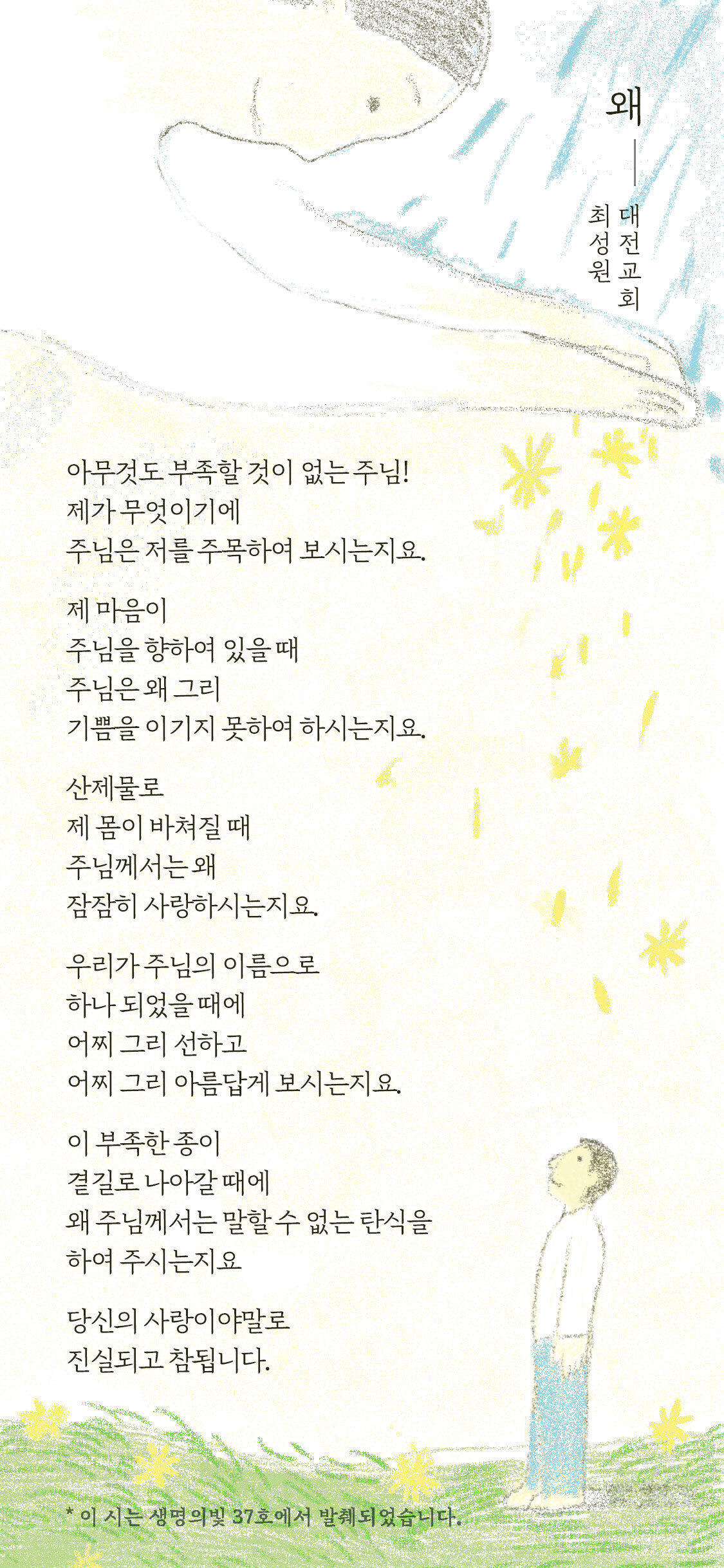 [시] 왜 - 대한예수교침례회 작성자생명의말씀선교회|작성시간22.05.11|조회수75 목록 댓글 0 글자크기 작게가 글자크기 크게가 이 시는 생명의빛 36호에서 발췌되었습니다.더 많은 시를 '생명의빛' 에서 만나보세요!!생명의빛 카페 cafe.naver.com/jbchbook생명의빛 홈페이지 book.jbch.org 다음검색 현재 게시글 추가 기능 열기 북마크 공유하기 신고 센터로 신고 댓글 댓글 0 댓글쓰기 답글쓰기 댓글 리스트