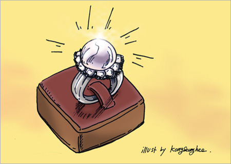 전날 밤 화장대 서랍에서 보았던 반지를 꺼내 들고