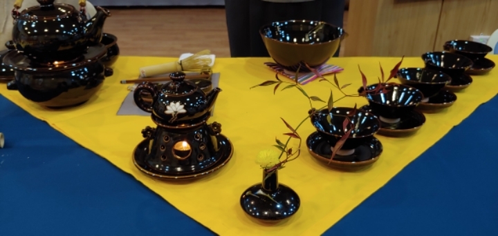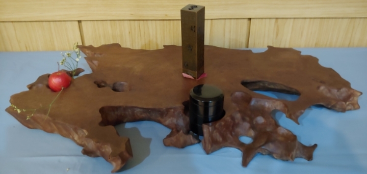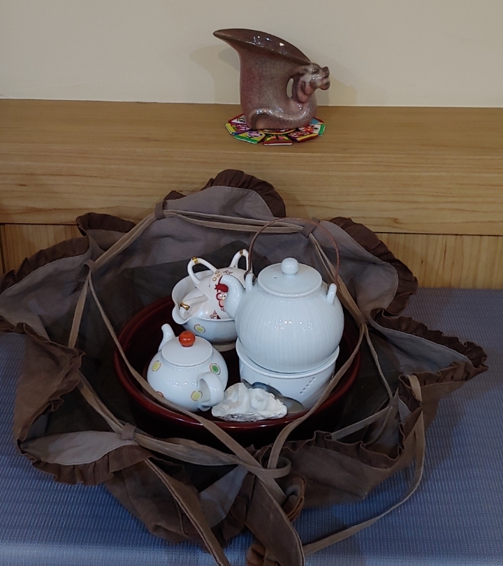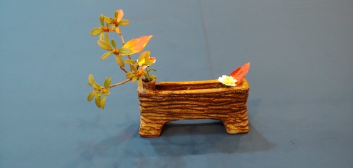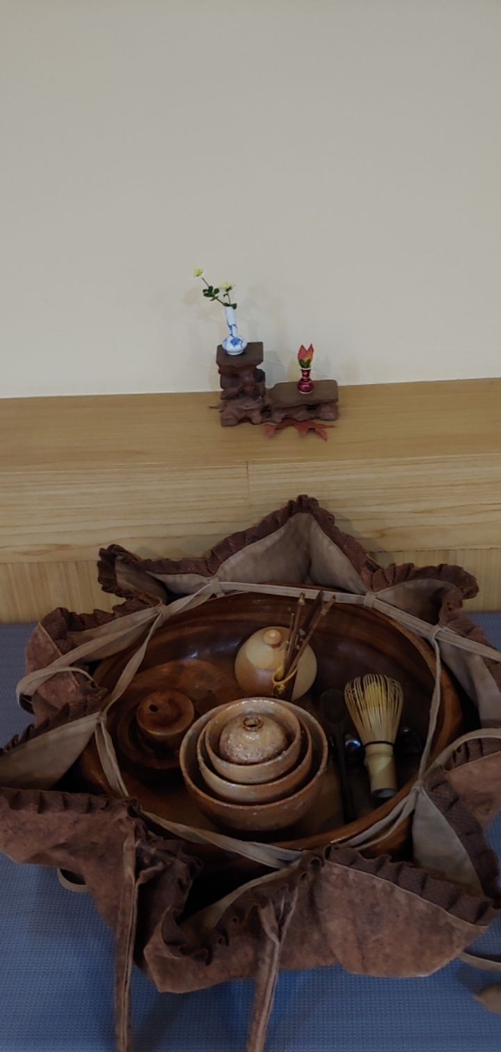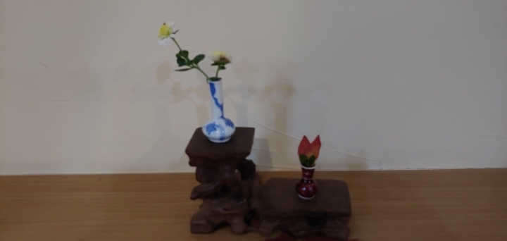 어린아이 새끼 손가락 보다 적은 찻자리 다화병을 상 하로 놓아 전통기법을 그대로 재현한 찻자리 다화.