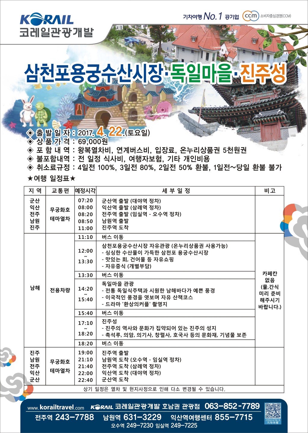 [2017-04-22(토)] 남해 독일마을/진주성/삼천포용궁수산시장 당일 작성자아리따운유|작성시간17.03.13|조회수355 목록 댓글 0 글자크기 작게가 글자크기 크게가 예약하기 바로 가기http://www.korailtravel.com/web/goods_view/index.asp?page_nm=goods_day&strApart=K&strBpart=X&strCpart=01&goodsNum=13650 다음검색 현재 게시글 추가 기능 열기 북마크 신고 센터로 신고 댓글 댓글 0 댓글쓰기 답글쓰기 댓글 리스트