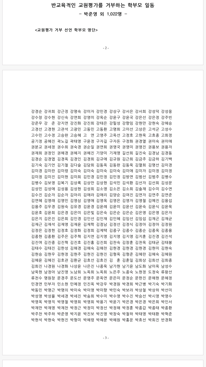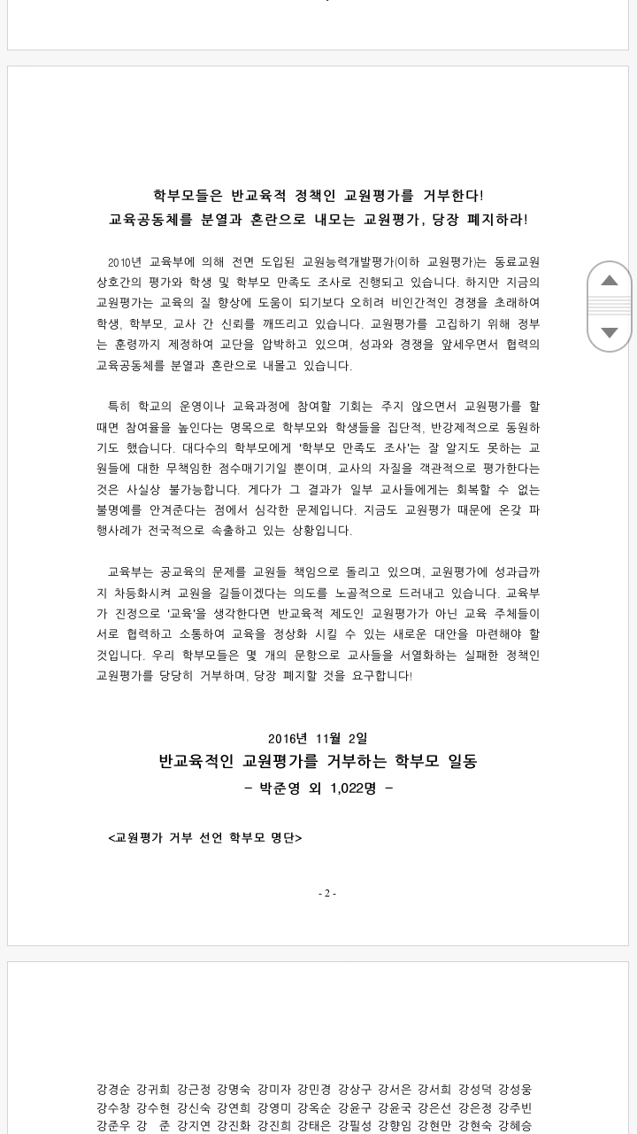 학부모들은 반교육적 정책인 교원평가를 거부한다!