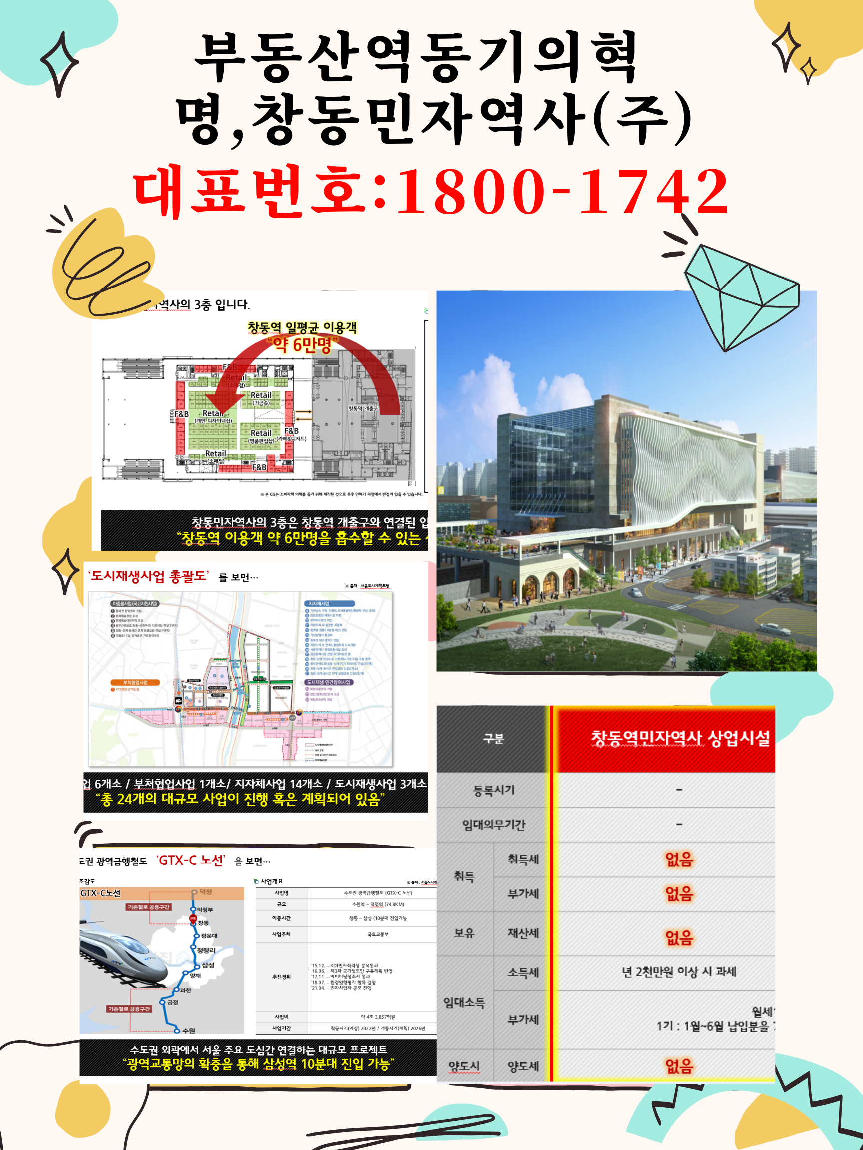 1호선 4호선에 이어 GTX-C노선이 확정된 "창동민자역사 아레나 스퀘어"입니다📢🎵🎷😄