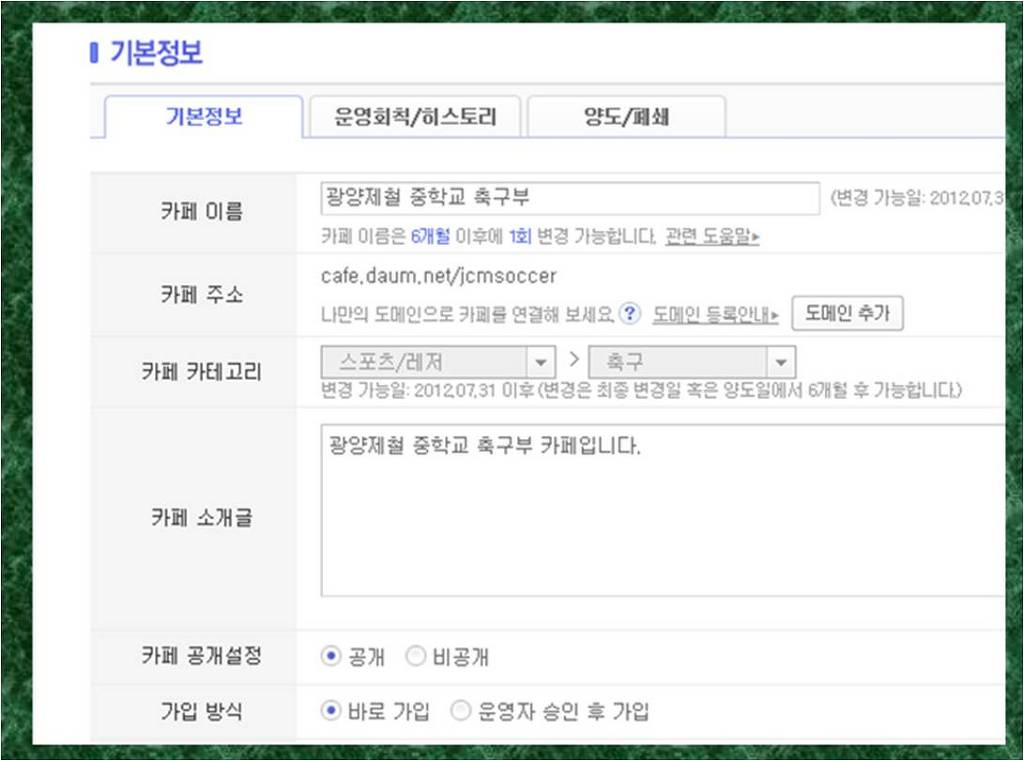 아래 카페의 기본정보와 회원등급관리를 안내합니다.