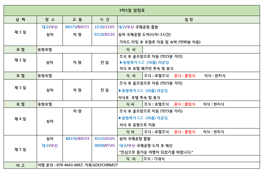 ☞ 여행 문의:070-4643-6067(주간),050-4974-3376(야간),카카오톡:golfchina77