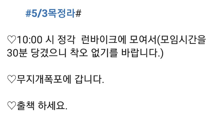 ☆☆5/3 목정라☆☆ 작성자사노라면|작성시간18.05.02|조회수37 목록 댓글 0 글자크기 작게가 글자크기 크게가 ♡♡♡ 다음검색 현재 게시글 추가 기능 열기 북마크 공유하기 신고 센터로 신고 댓글 댓글 0 댓글쓰기 답글쓰기 댓글 리스트