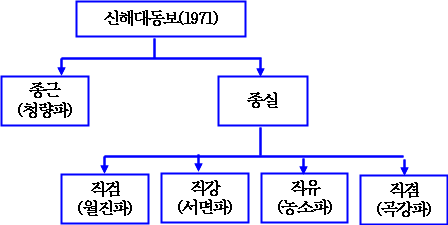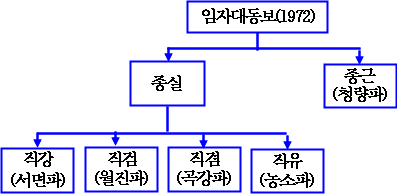 그리고, 2世 종근(청량파조)할아버지가 장남이면 당연히 청량파가 종가가 되는데, 왜 월진파와 항상 대립을 하는가 하면, 현재 월진파에서는 2世 종근 할아버지를 장남으로, 3세는 자기들 派祖(파조)이신 직검 할아버지를 넷째라고 주장을 하는바, 이렇게 되면 월진파로서는, 우리 서면파보다는 큰집이 되고, 청량파 종가와는 제일 절친한 사이로 지내고 있으니 나름대로 자존심을 확보할 수 있다는 것이다.