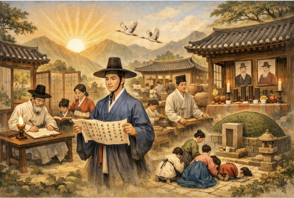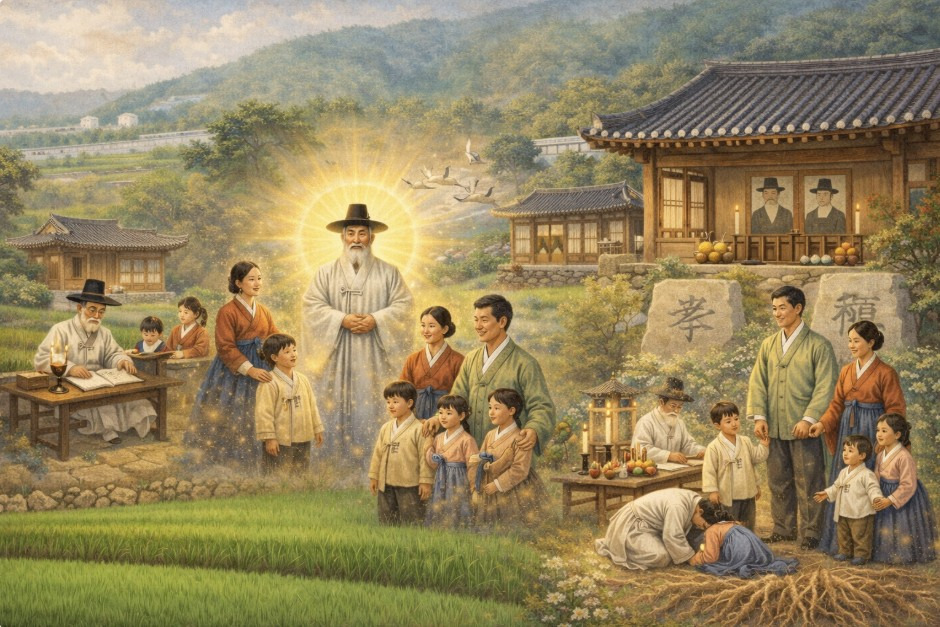결국 가문을 잇는 힘은 도(道)를 공경하는 태도, 즉 효·예·의의 실천에 있음을 보여줍니다.