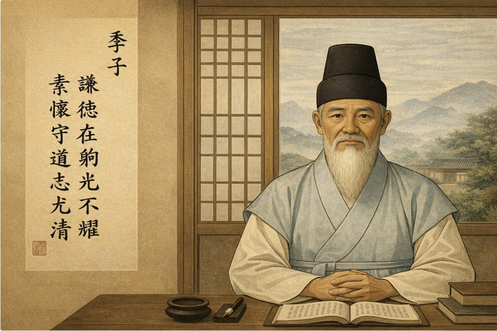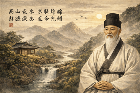 말없는 몸가짐이 만대에 전해져, 그 덕의 빛이 후인을 길이 비춘다